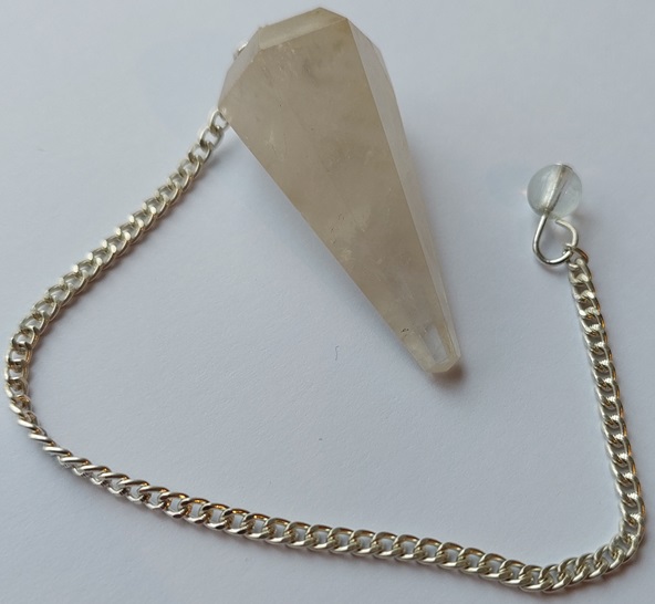 Light Smoky Crystal Gemstone Pendulum with chain & organza pouch